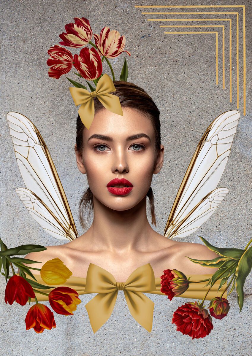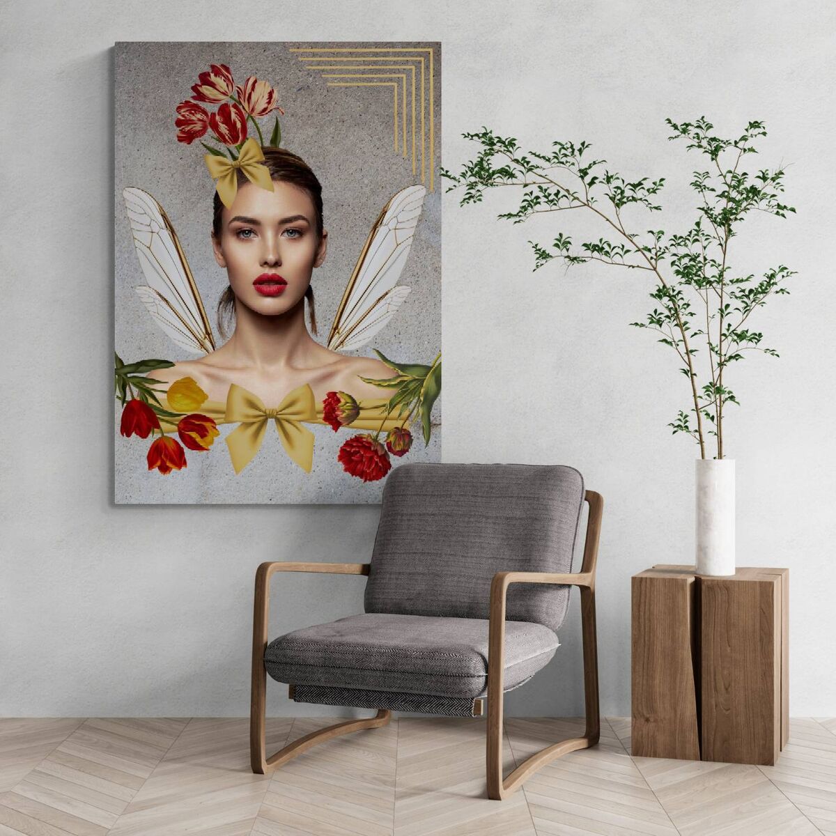 Vrouw met vleugel in art deco style. Getoonde prijs is voor canvas 50 x 70 cm. Andere materialen en formaten verkrijgbaar.