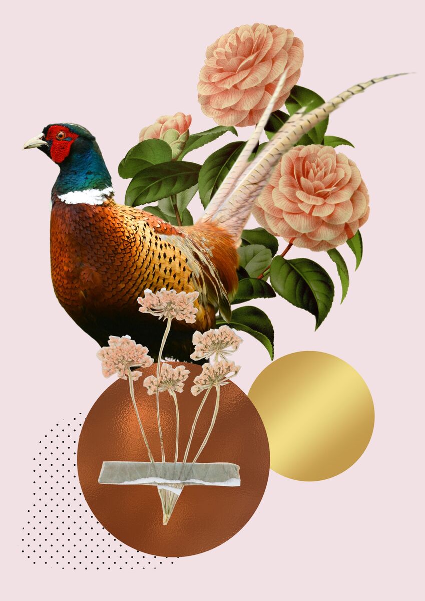 Fazant met vintage bloemen